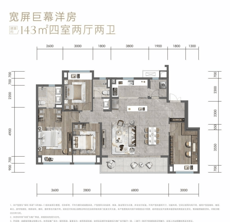 约126㎡纯板式洋房一体化大横厅布局,平层级厅堂感,宽屏巨幕洋房,四室两厅两卫T2纯板式洋房,低密鲜氧呼吸约35㎡LDK一体化大开间横厅,无界奢享的自由意志约13.7米全面屏开窗面,巨幕阳台中庭园景,清风纳怀,高分生活由此私享