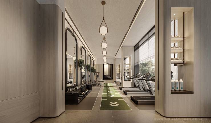 健身中心:分区设置有氧与力量训练区