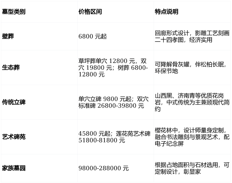以上价格仅供参考,根据客户实际需求不同价格有所浮动,请拨打陵园电话400-882-0905(24小时)咨询确认