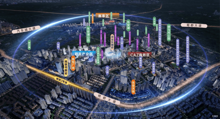 东安湖片区汇聚豪威马术俱乐部、水上运动中心等高端配套,2024年将举办林俊杰等明星演唱会,以及多项国际赛事,成为成都文化新地标。