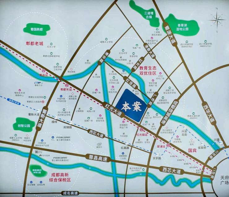 该项目位于郫都区红光板块,主打小高层和洋房产品,主打“准现房”销售模式,目前已完成交付。
