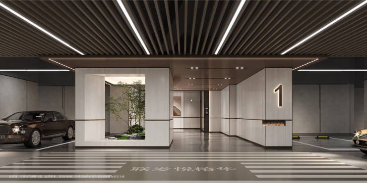 地库追光坡道,公区大范围铝板运用会呼吸的地库,退让车位「艺术绿植」造景负一层大堂同首层大堂交付标准