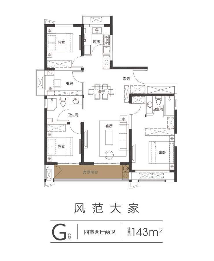 ④3米层高、1.8米宽大阳台,且多阳台赠送,约78%-82%高得房率。