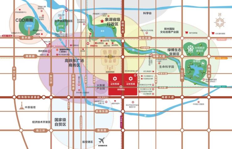 1、区位优势:郑东升级板块白沙核心区,北靠象湖省级行政中心,东邻绿博国际生态文创园区,西接郑州高铁东广场,南依郑州国际窗口河南自贸区,天赋首地,亿万级价值重枢,城市地位与生俱来!