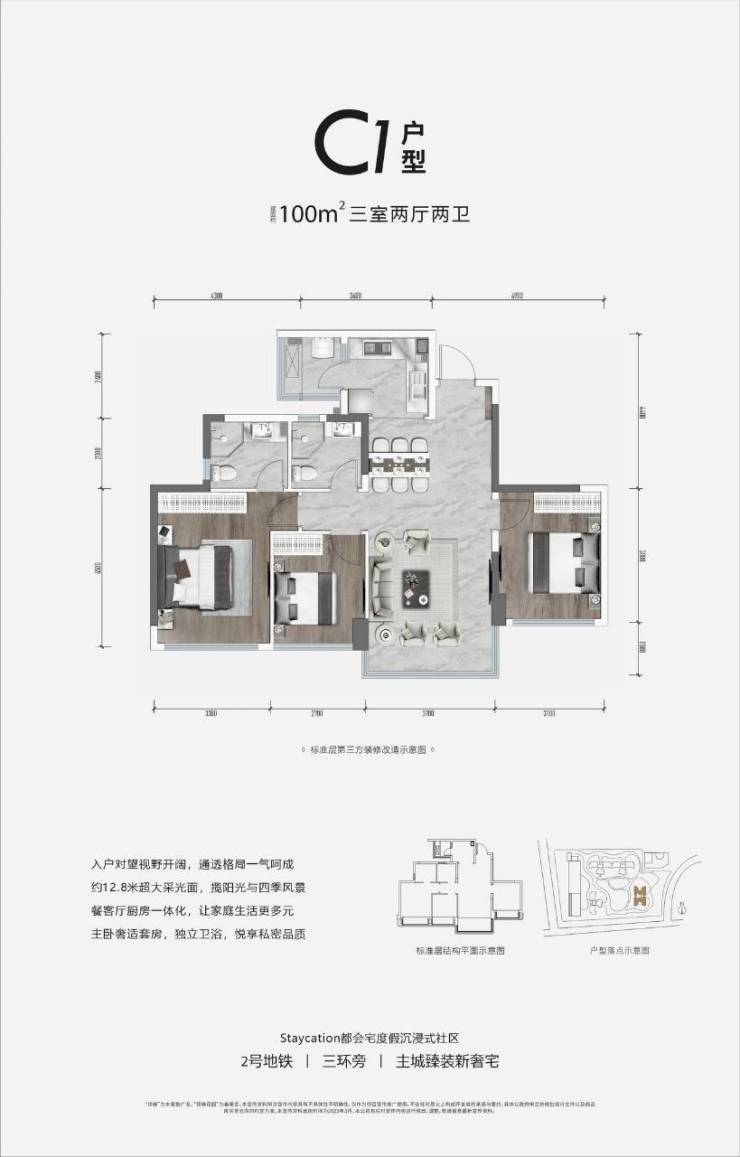 2⃣轨道交通:近成都东客站,日常出游、出差可快速到达;且距离地铁2号线成渝立交站约1.2公里