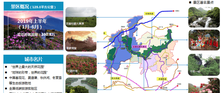 百里杜鹃花季期间游客流量2021年达到40万/日 是川渝及周边旅游地产中单日人流量最多的5A景区,人流即财流。