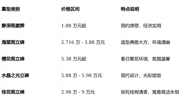 以上价格仅供参考,详情请拨打陵园电话:400-996-0853 (24小时)咨询确认;
