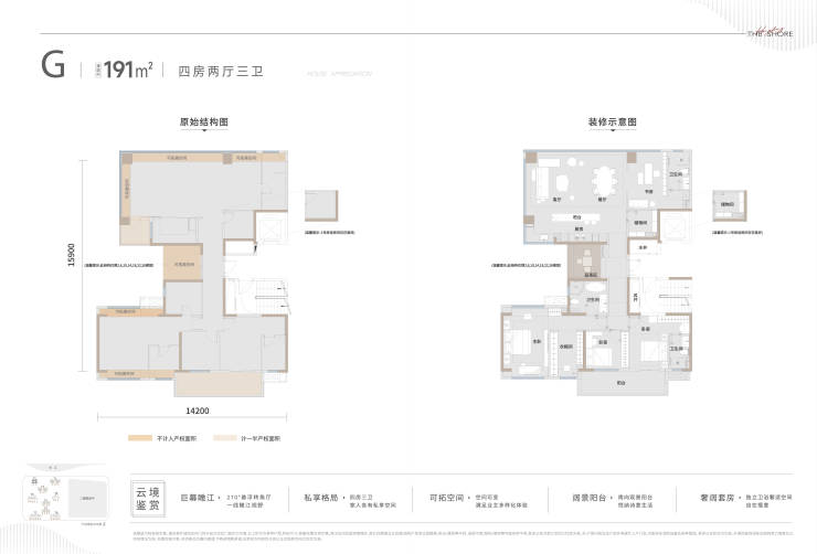 建面约169m²一线瞰江平层