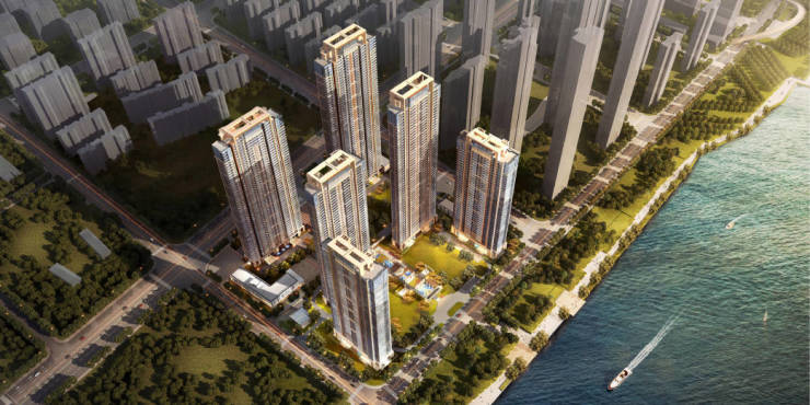 “上海汤臣一品”同款建筑布局,6栋超高层住宅U型排布,引江入户,视野无遮挡