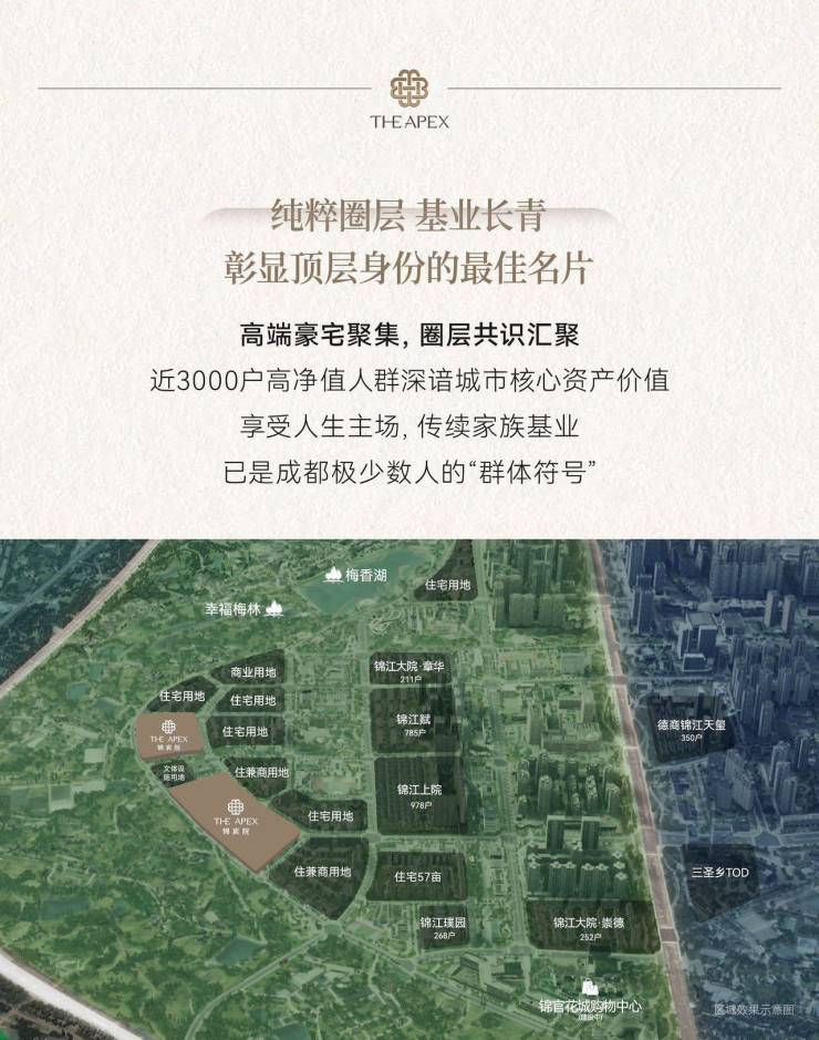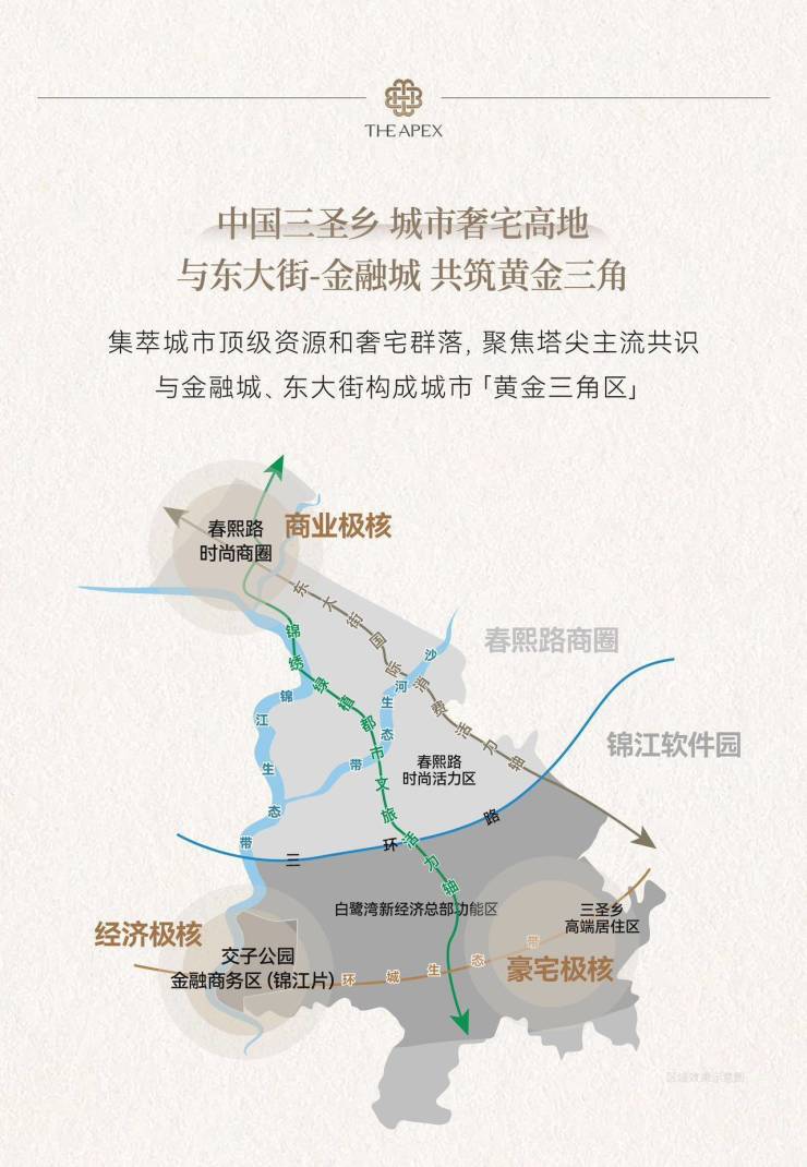 ,扼守主城向南发展主轴,是锦江主城罕见的低密高端宜居板块,上承东大街、金融城繁华,下启白鹭湾新经济活力,兼得主城核心价值与原生生态资源。项目总占地约