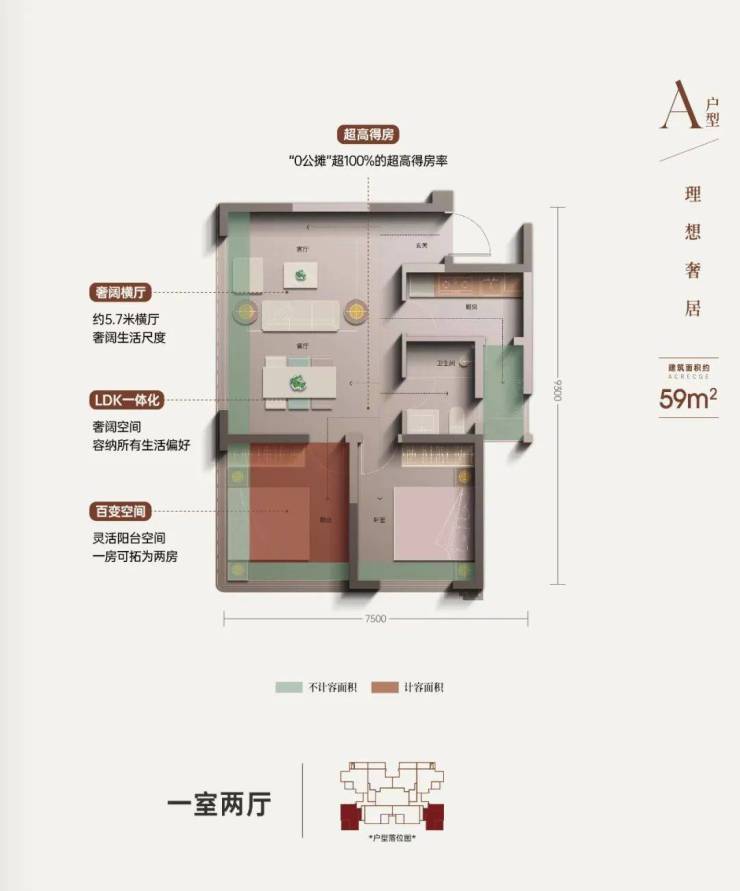 户型一、【建筑面积约59㎡ 一房可改两房】