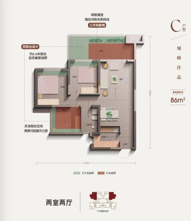 户型四、【建筑面积约86㎡ 两房可改三房】