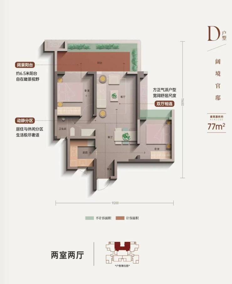 户型三、【建筑面积约77㎡ 】