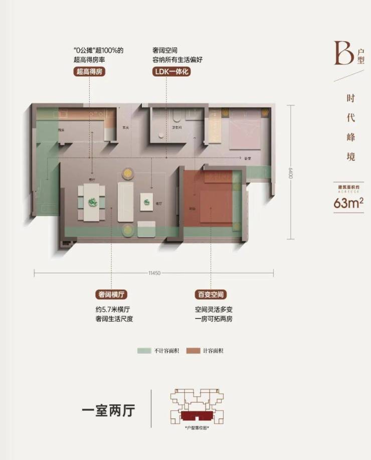 户型二、【建筑面积约63㎡ 一房可改两房】