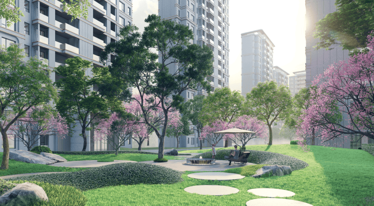 【四院——富氧私属院落】▍约500㎡泡泡花园 ▍约700㎡阅读花园 ▍约750㎡氧气花园 ▍约350㎡山丘乐园