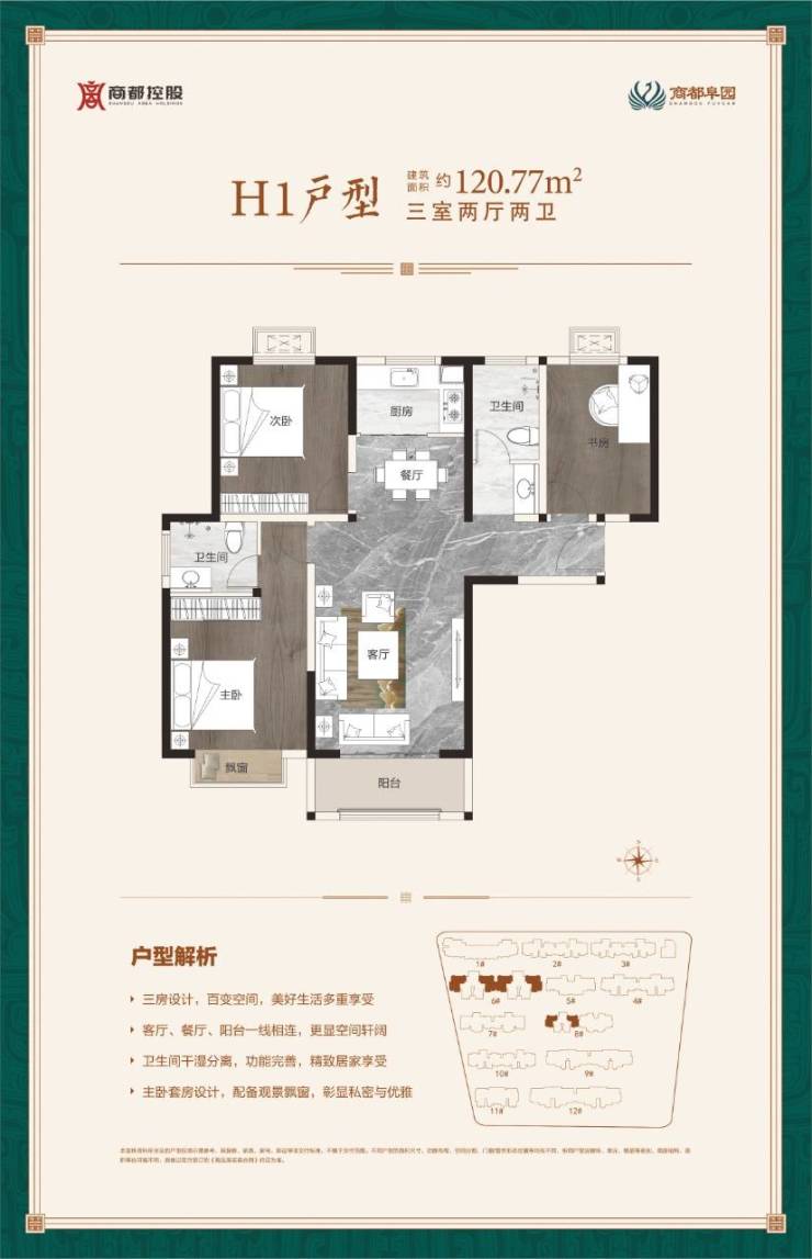 精研户型,以合理的空间配比打造建筑面积约52-144㎡的全系产品,满足不同人群的居住需求,整体设计以梦回商代历史情怀和复兴传统审美价值观为归旨,营造一种商韵流淌,境出雄浑的空间意境。
