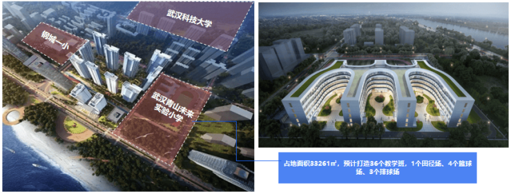 10米可达优质学区,300米达重点高校,书香环绕家门口武汉青山未来实验小学,学校规模区域最大,政府指定的区域重点小学;初中对口任家路中学;同时小区规划自带2所幼儿园,可实现12年目送式教育。
