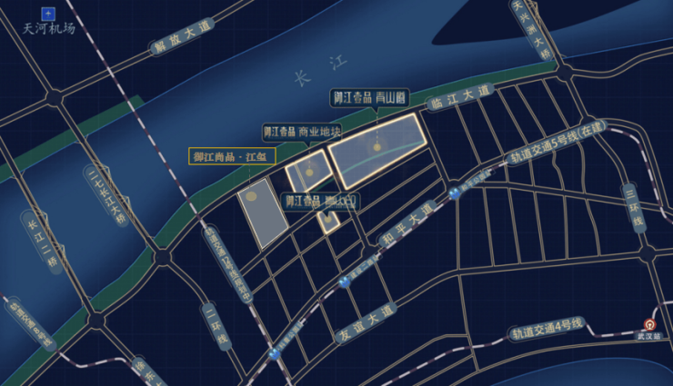 项目位于武昌滨江商圈,距离武商城市奥莱仅650m,20分钟即可到达武昌万象城商圈、武汉天地商圈。