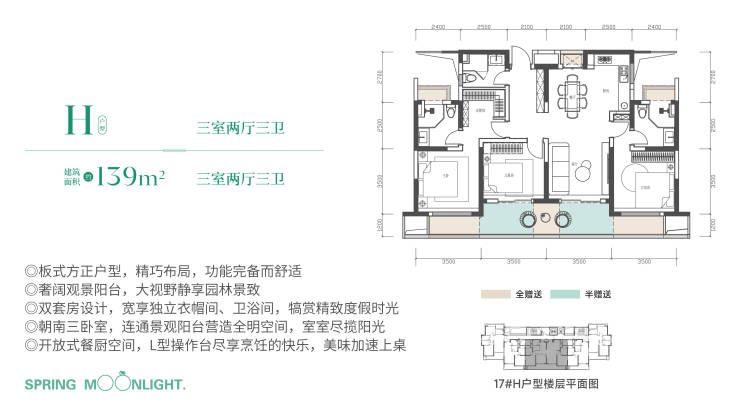H户型/ 建筑面积约139㎡ 三室两厅三卫