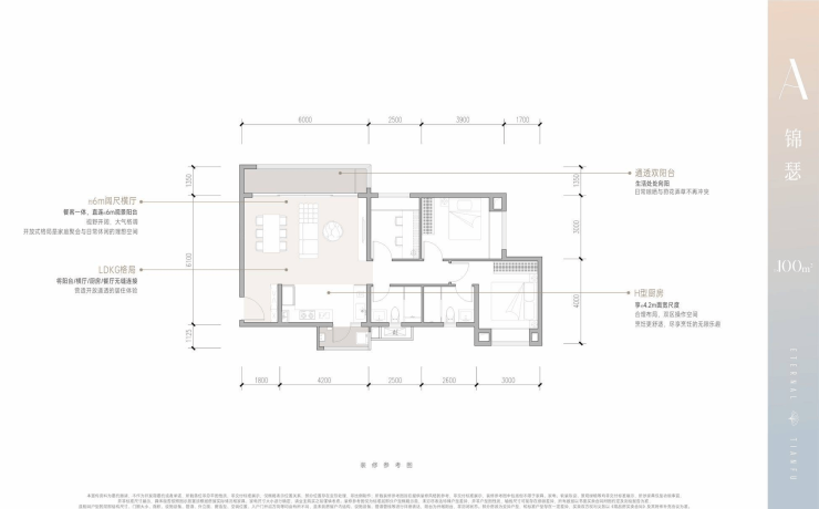 100㎡约6米横厅+双阳台H型厨房/LDKG一体化布局
