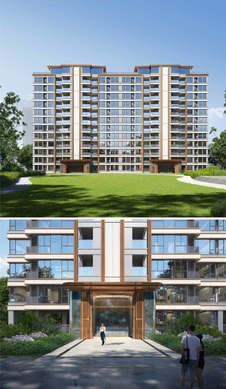 建筑立面以扁平切割为设计语言,勾勒出当代雅奢风骨。外墙浅灰色主基调奠定沉稳气场,通透玻璃与竖向铝板线条巧妙相融,凝练出华贵典雅气质。材质与线条在此精妙交织,碰撞中达成和谐统一,淬炼出令人过目难忘、历久弥新的艺术张力。