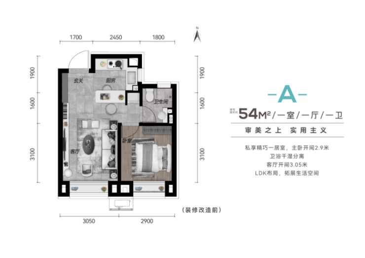 区域罕见 舒适宜居户型· 建面约54平