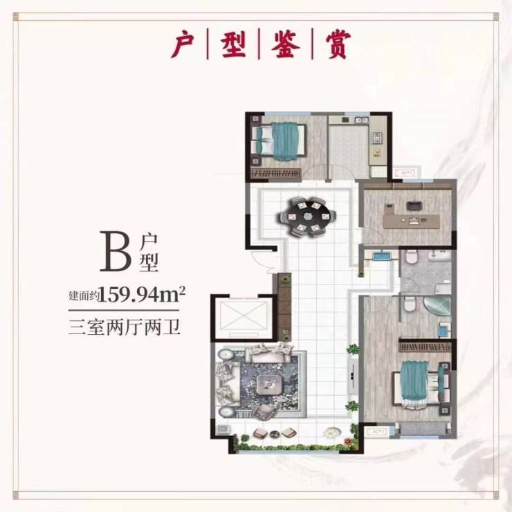 面积:142㎡(三室两厅两卫)143㎡(三室两厅两卫)159㎡(三室两厅两卫)