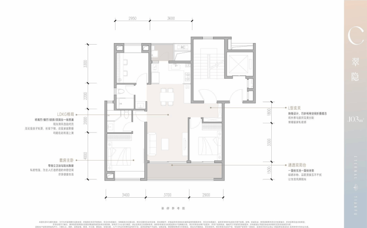 103㎡L型玄关+双功能阳台主卧飘窗+独立卫浴
