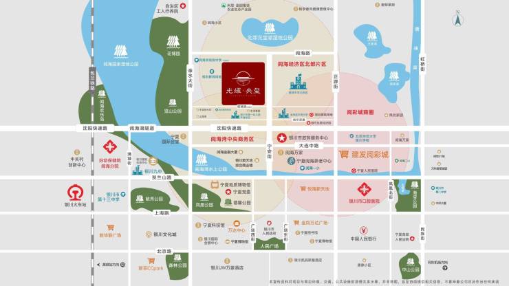 项目位于宁安北街和阅海路交会处西南角,宁安街是贯穿银川南北的一条主干道,也是城市发展的中轴线,集萃政商、交通、教育、生态、医疗等优渥资源。咫尺唐徕中学北校区、阅海湾高级中学(规划中)深厚文脉;近揽花博园、阅海湿地公园等5大公园;毗邻阅彩城与市民大厅繁华版图。
