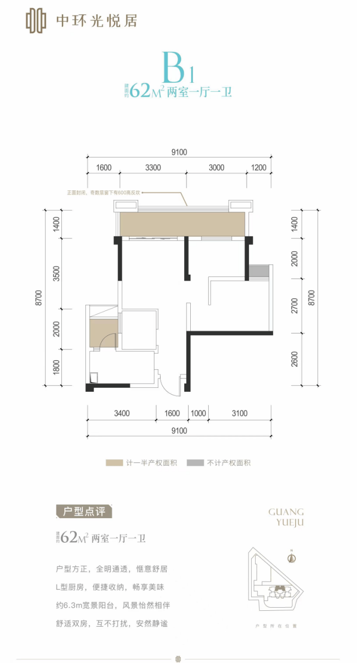 【项目基础信息】项目名称:中环光悦居,开发商:四川省物流产业股份有限公司,项目位置:四川省成都市成华区二仙桥东路60号,容积率:4.5,绿化率:20%,公摊:20%(赠送10%左右,得房率90%),车位数:365个,占地面积:10.58亩,梯户比:住宅3T8户,办公3T10户,总户数:住宅192户,办公80户,物业费:高层2.8元,办公4.2元,交房时间:2023年9月30日,产权年限:住宅70年,办公40年,物业公司:保利物业,产品面积段:62-73-83-91㎡,单价:2.1万左右