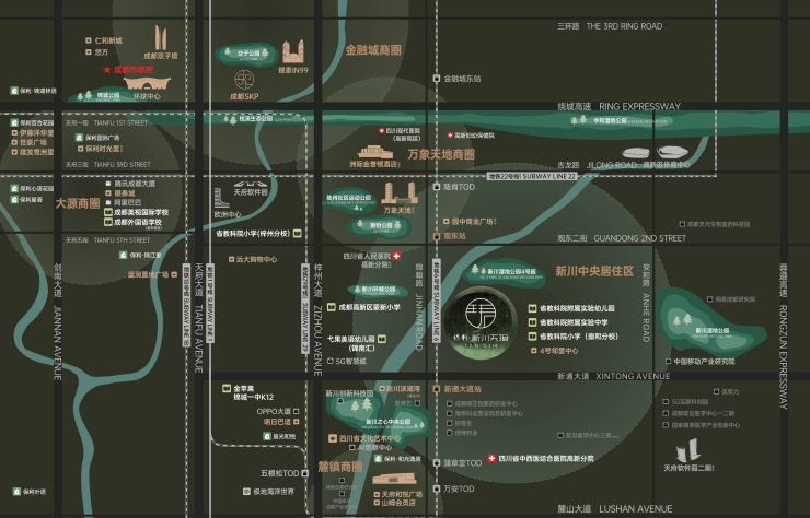 公园城市样板,生活在风景里:项目本身就是一座立体园林,更与约60万㎡的新川之心公园及多个社区公园为邻,践行真正的“公园城市”理想。
