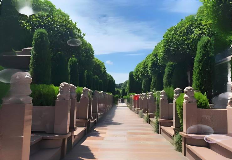 传统墓葬:中式、西式、中西联璧式墓区风格多样,墓型超100种,价格区间为3.88万-50万元(如标准立碑3.88万起,高端艺术墓可达数十万元)。