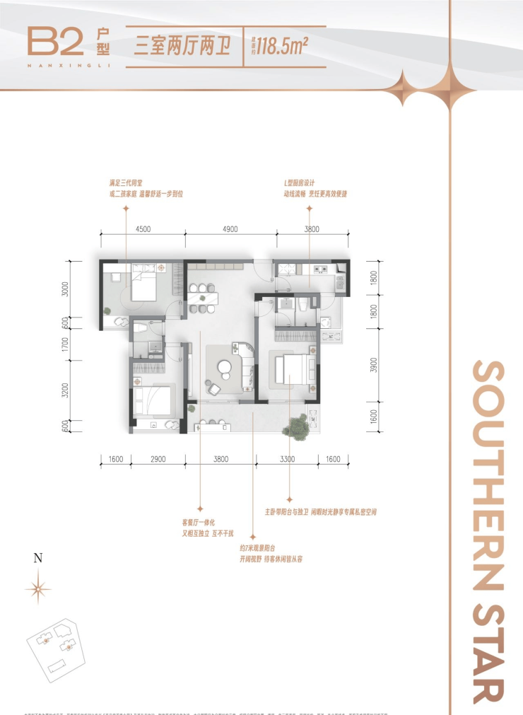 在售面积:118-126㎡(套三双卫)