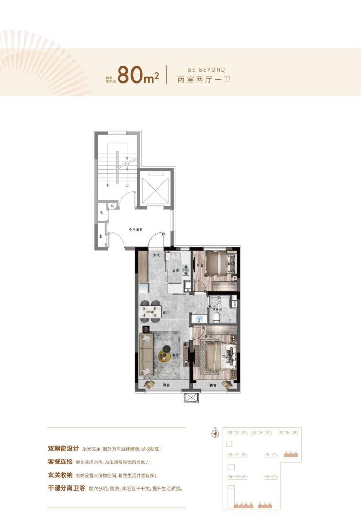 面积:80㎡ 精装小高层
