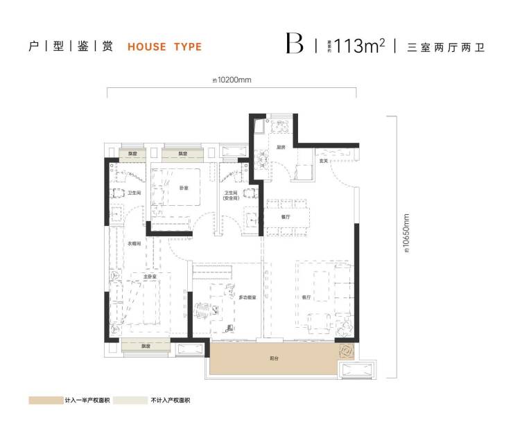 B 建面约113㎡三室两厅两卫