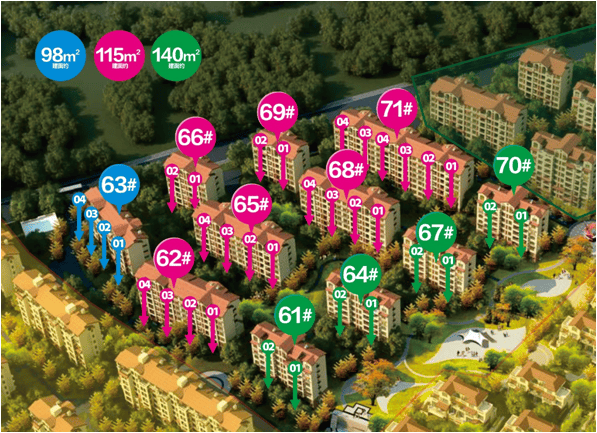 62-65-66-68-69-71号楼:117平(3房2厅2卫) 总层高8层 一梯两户