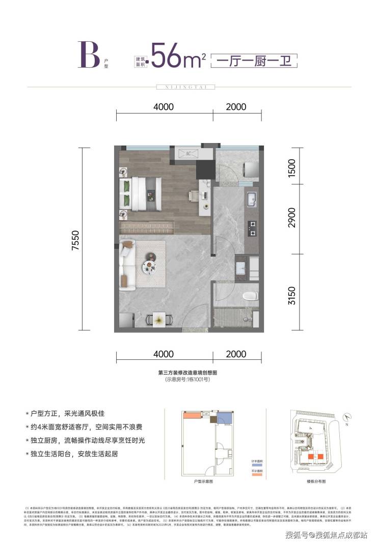 B户型:56㎡|一厅一厨一卫