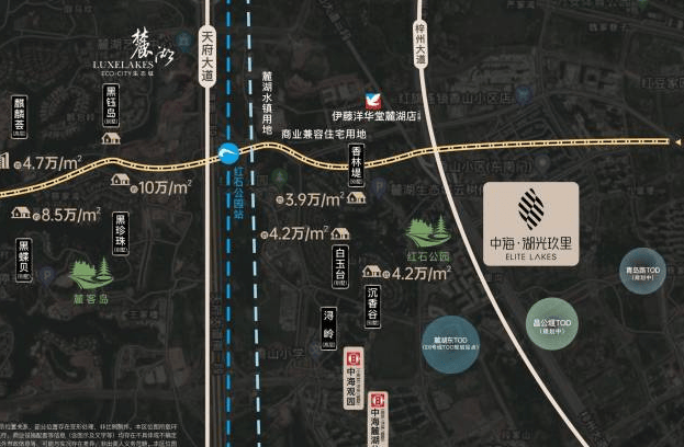 璀璨商业:麓湖水镇、伊藤天府旗舰店(在建中)、天府和悦广场、山姆会员店、麓山麓镇;
