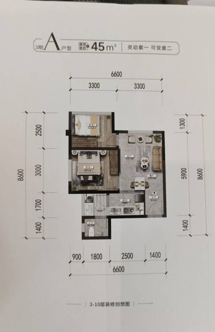 面积:45㎡-48㎡-58㎡-64㎡-68.9㎡93.23㎡