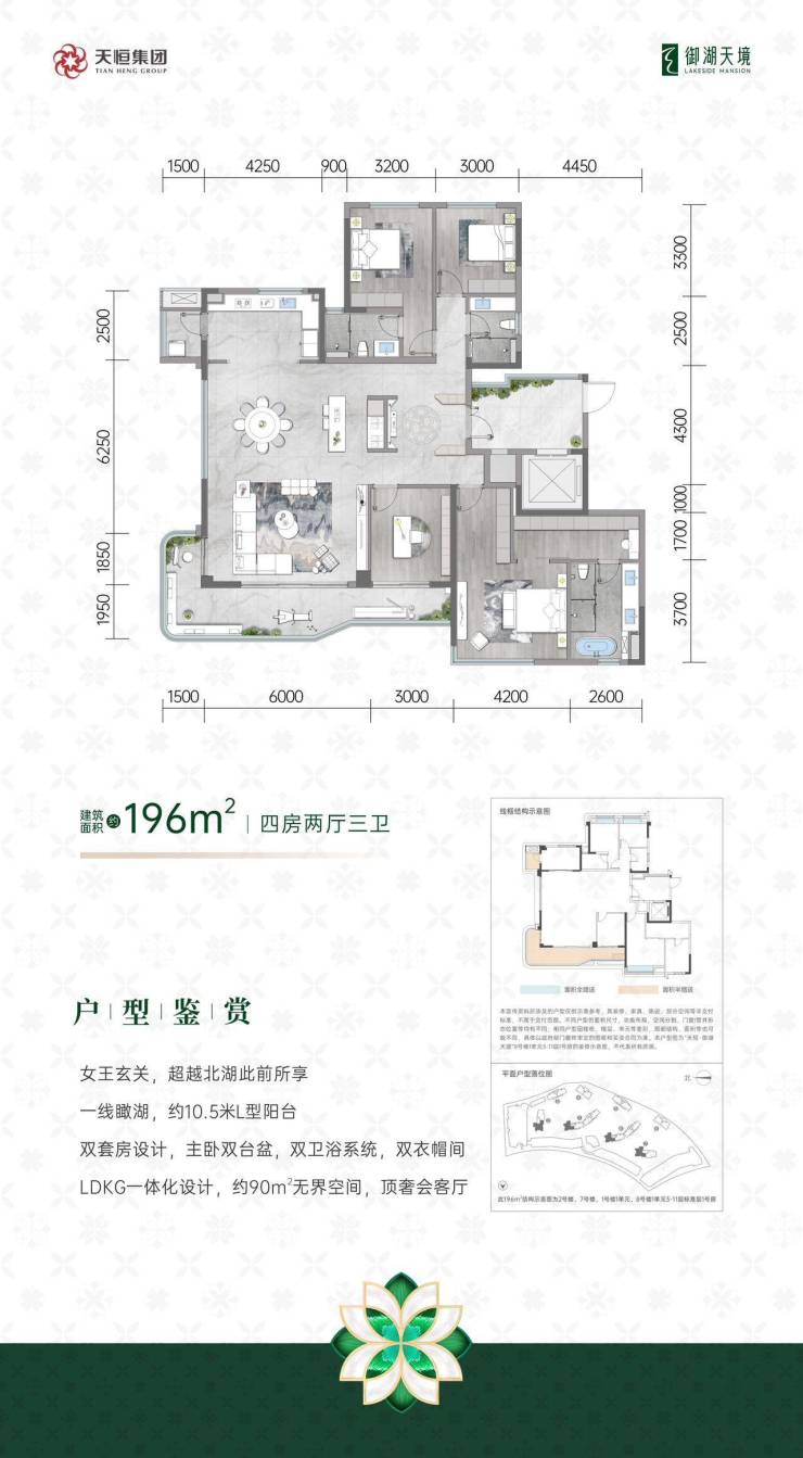 天恒御湖天境落子成华区北湖板块,由北京西城区国资委直属国企「天恒置业」开发,打造建面约143-196㎡一线瞰湖精装大平层。项目以