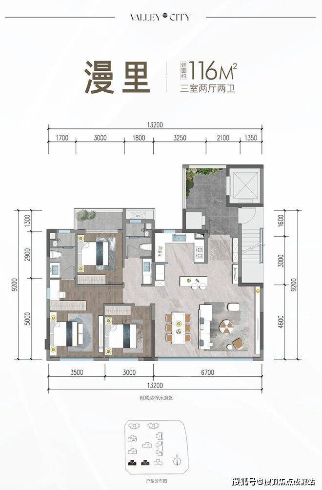 建面约116㎡三房两厅两卫