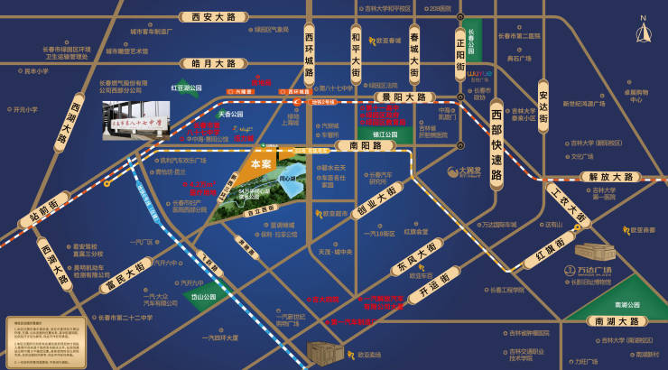 项目位于绿园区核心地段,西环城路与南阳路交会西行200米,周边无大型商业及成规模社区配套型商铺