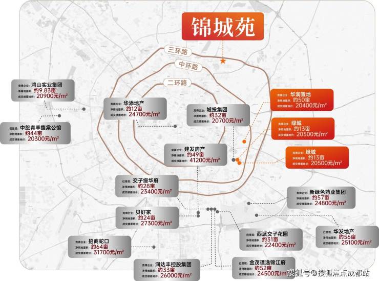 三环内最高地价破4万——2025年3月27日锦江金三49亩,以约41200元/㎡的成交楼面地价成交,溢价率达106%,创全城地价纪录新高