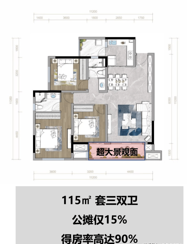 面积:115㎡高层(套三)126㎡高层(套四)