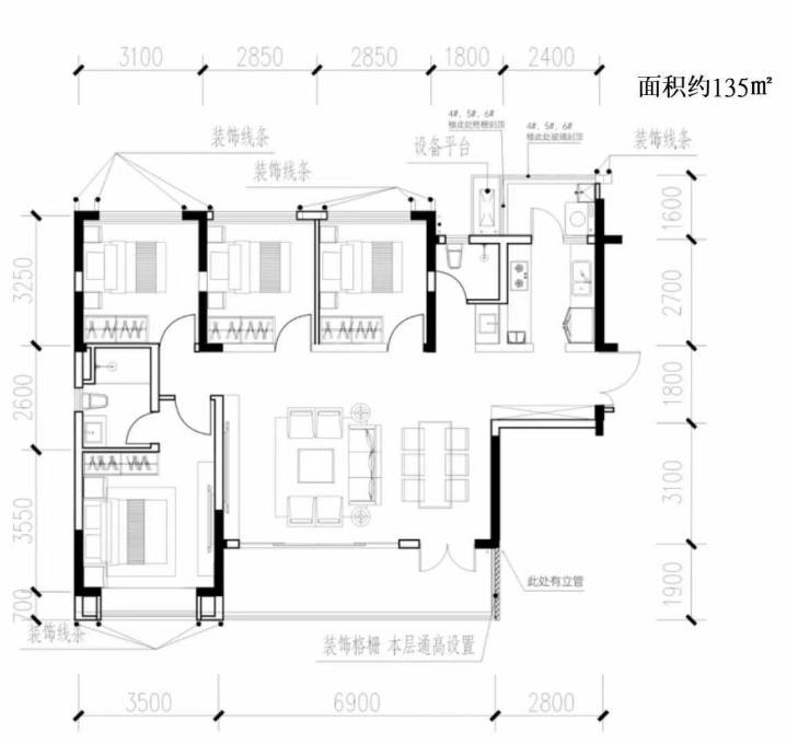 •总层高:二期12-17F(一楼4.5米架空层无住宅)三期9-17F