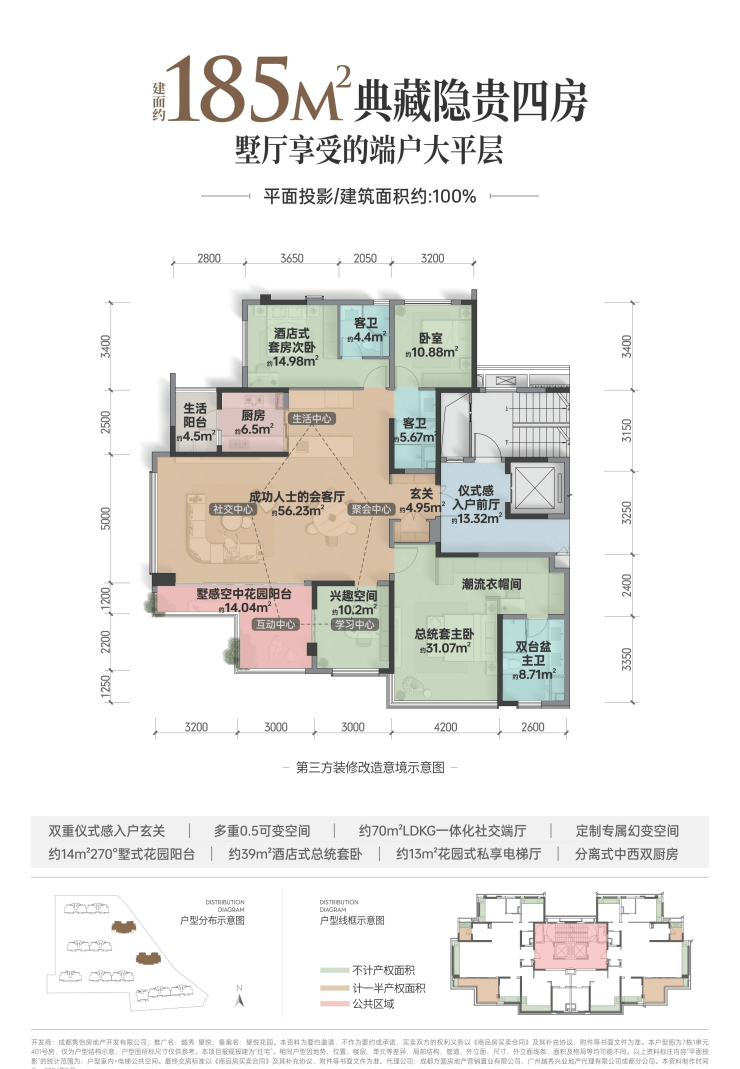 得房率:143㎡-104%;185㎡-100%