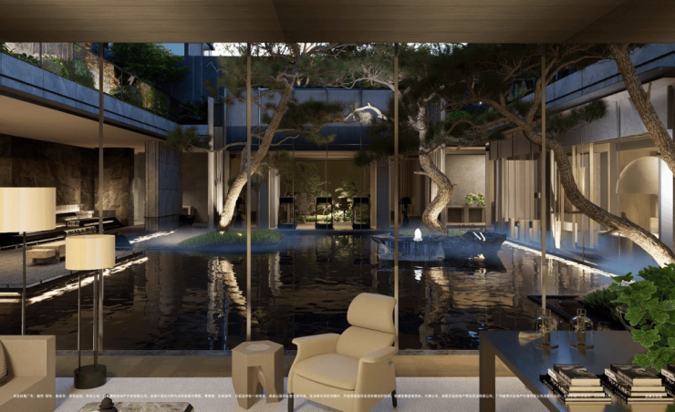 b) 隐奢典雅的三重九境景观院落