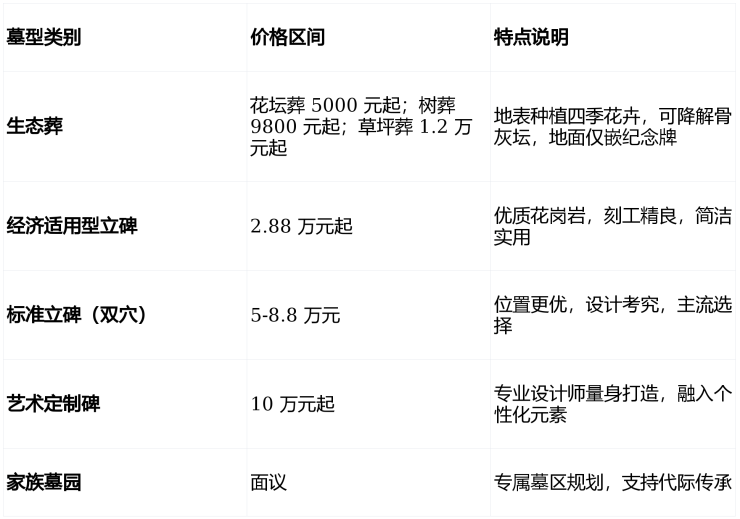 以上价格仅供参考,详情请拨打陵园电话:400-882-0905(24小时)咨询确认;