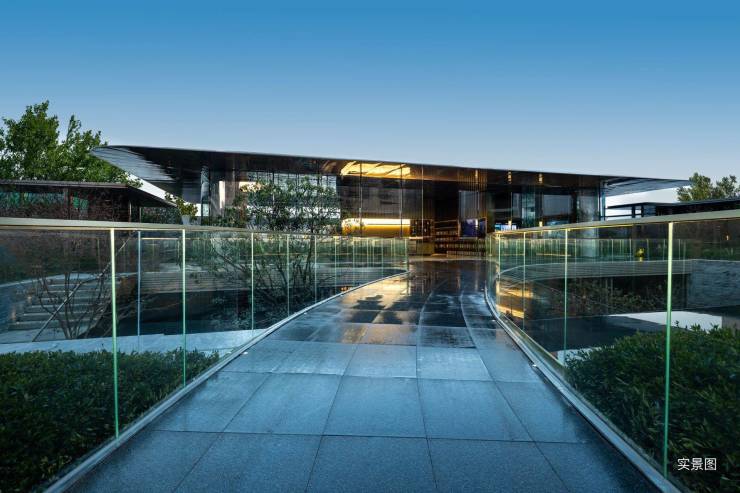约44m宽,约7.8m高挪威绿奢石+玫瑰金色全金属飘檐,极简雅奢质感门廊,恢弘大气,营造五星级酒店归家体验。