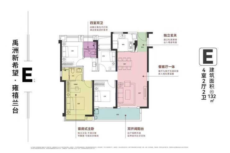 132㎡E户型(四房两厅两卫)位于2#楼边户